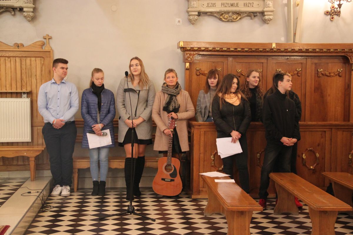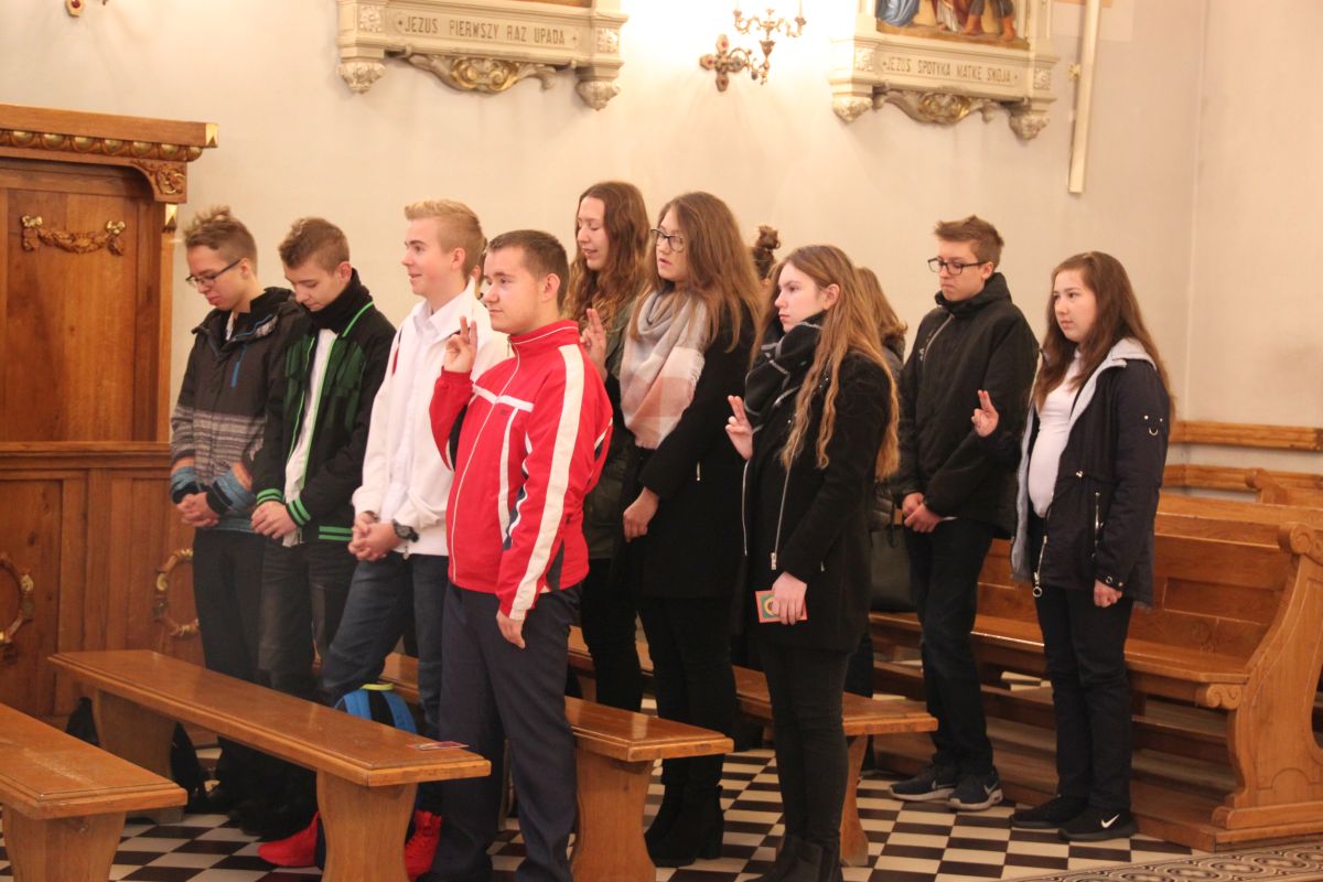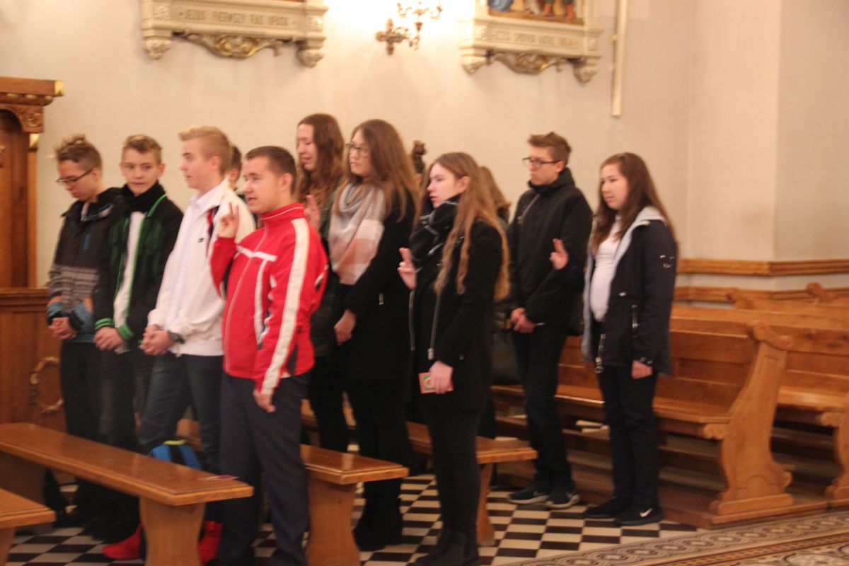Wtedy bowiem odbyło się ślubowanie uczniów klasy pierwszej Liceum. Podczas Mszy Świętej w kościele pw. Najświętszej Marii Panny młodzież, przygotowana przez swoją wychowawczynię, p. Anetę Bednarczyk złożyła ślubowanie na sztandar szkoły.